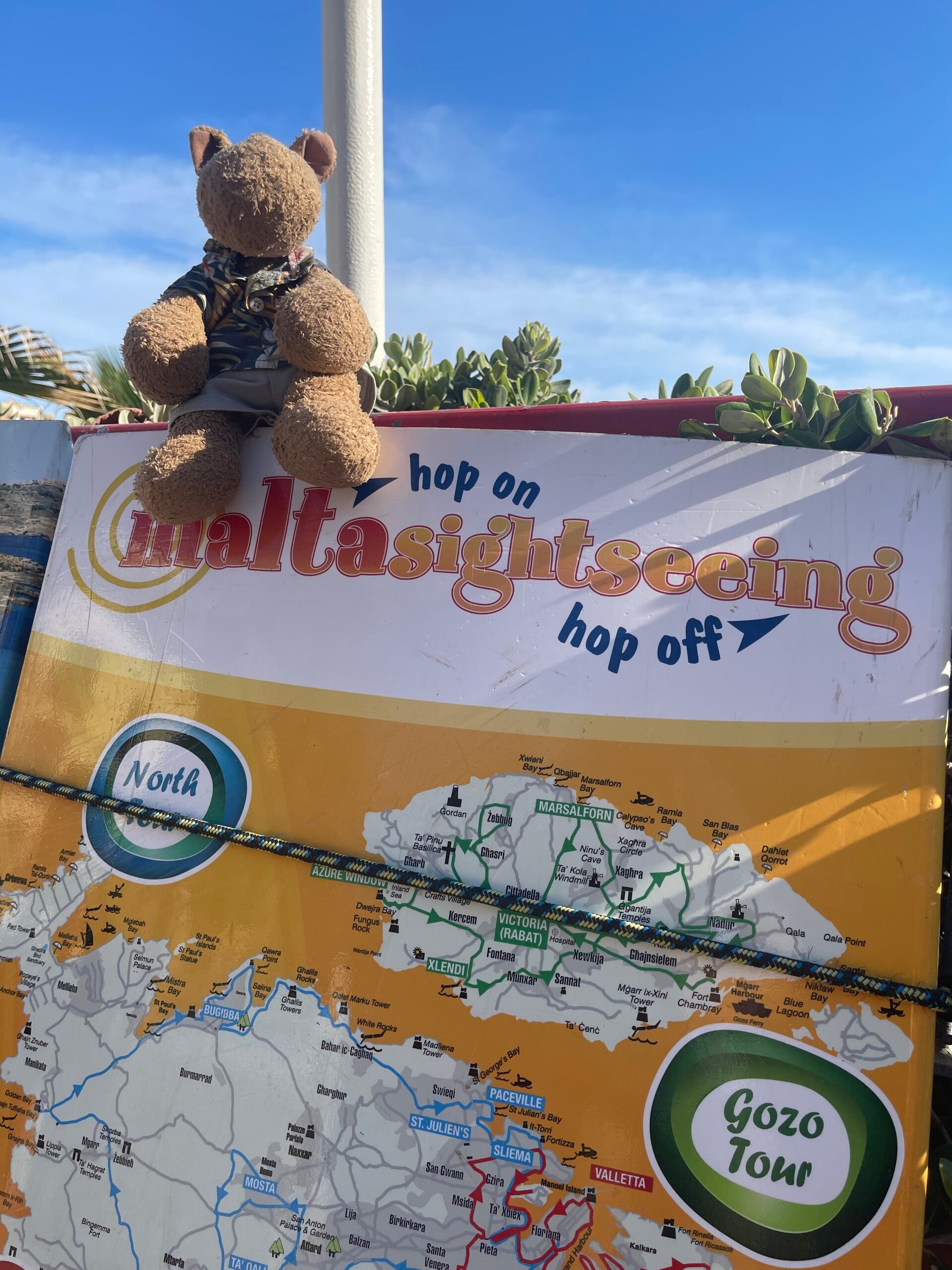 Grundsätzlich kann man alle Ziele vor Ort mit dem Bus erreichen. Die Alternative ist ein Wagen von Uber/ Bolt . Außerdem gibt es auch einen Hopp On-Hopp Bus. Letzterer startet unweit des Fähr-Terminals . Nachteil des Busses wenn man nur eine Tagestour nach Malta macht: Man sieht viel vom Bus aus, aber eigentlich sieht man auch nichts. Die Zeitabstände zwischen den Abfahrten der Busse ist relativ lang und bei dem einen oder anderen Ziel wie z.B. Ramla Bay steht man beim Warten auf den nächsten Bus insbesondere im Sommer in der prallen Sonne des Tages.