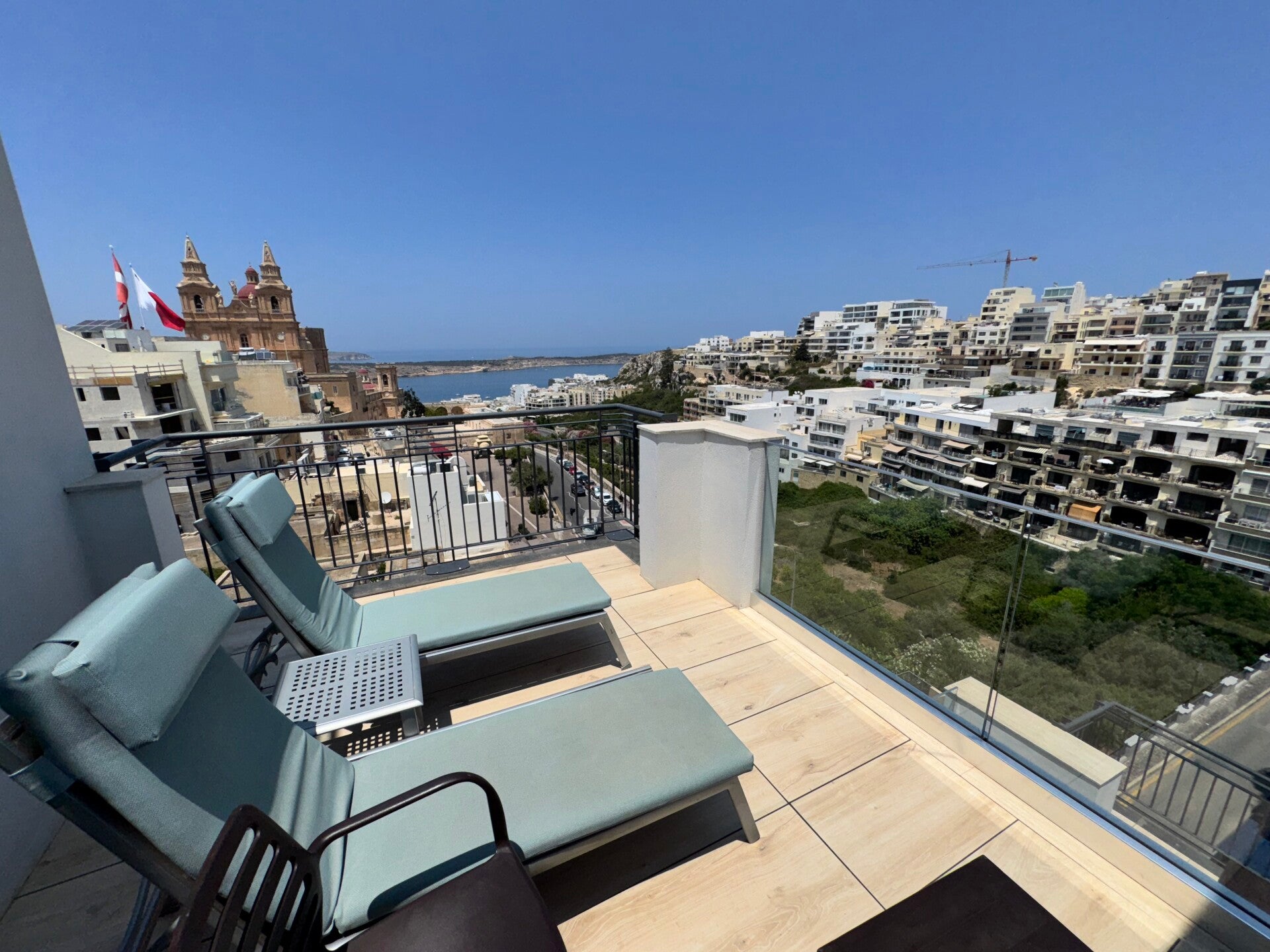 Ein Träumchen !!! Dieses Mal haben wir ein Eckzimmer bekommen. Unsere Deluxe Junior Suite auf der 8. Etage hatte einen wunderschönen Ausblick auf die Kirche von Mellieha und das Meer. Die Einrichtung ein wenig komprimierter im Raume verteilt, das Badezimmer mit einer Duschbadewanne an Stelle der begehbaren Dusche. Aber dafür halt der größere Balkon, aber eigentlich mehr eine Terrasse.
