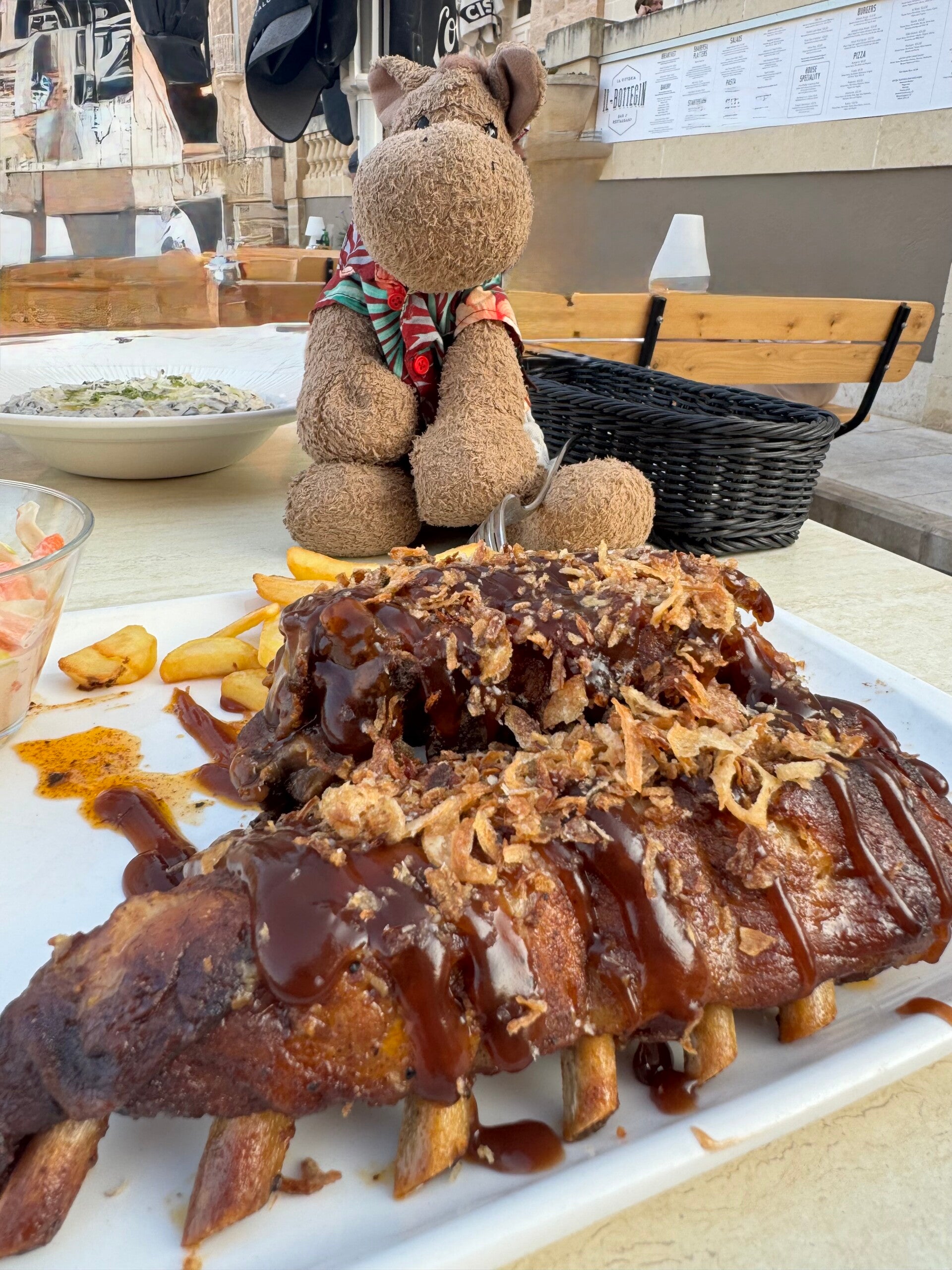 Die Cocktail-Liste ist länger als ich groß bin und hier gibt es so viele Schlummer-Drinks für die Nacht. Die netten Mädels hinter der Theke schütten immer reichlich für mich ein. Meine beiden Träger bestellen immer nach meinen Wünschen und jeder der Beiden immer ein anderes Getränk. Somit gibt es dann pro Bestellung vier Getränke und ich versuche dann so schnell zu trinken das die Eiswürfel nicht schmelzen können. Und bei der ganzen Schlürferei genieße ich den Ausblick auf die Bucht von Mellieha.